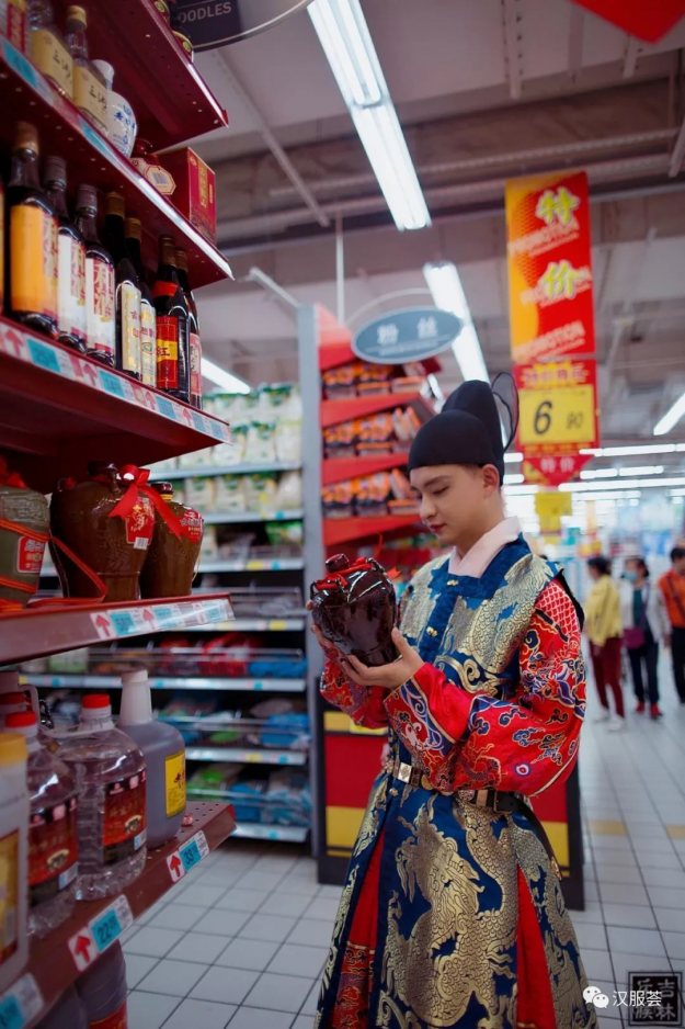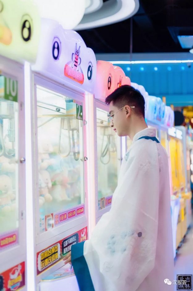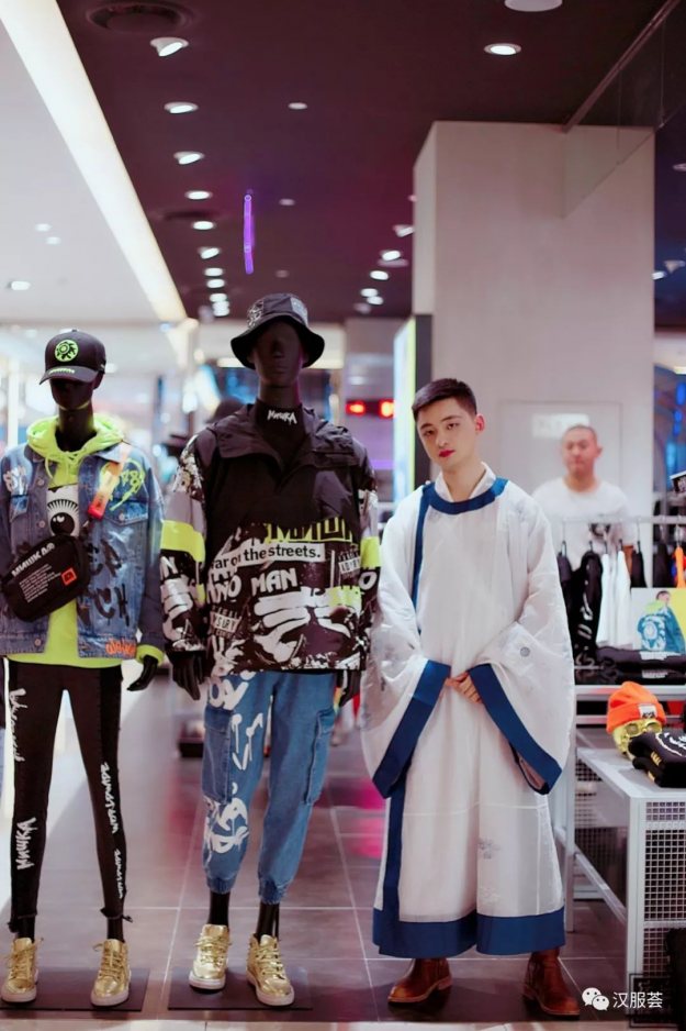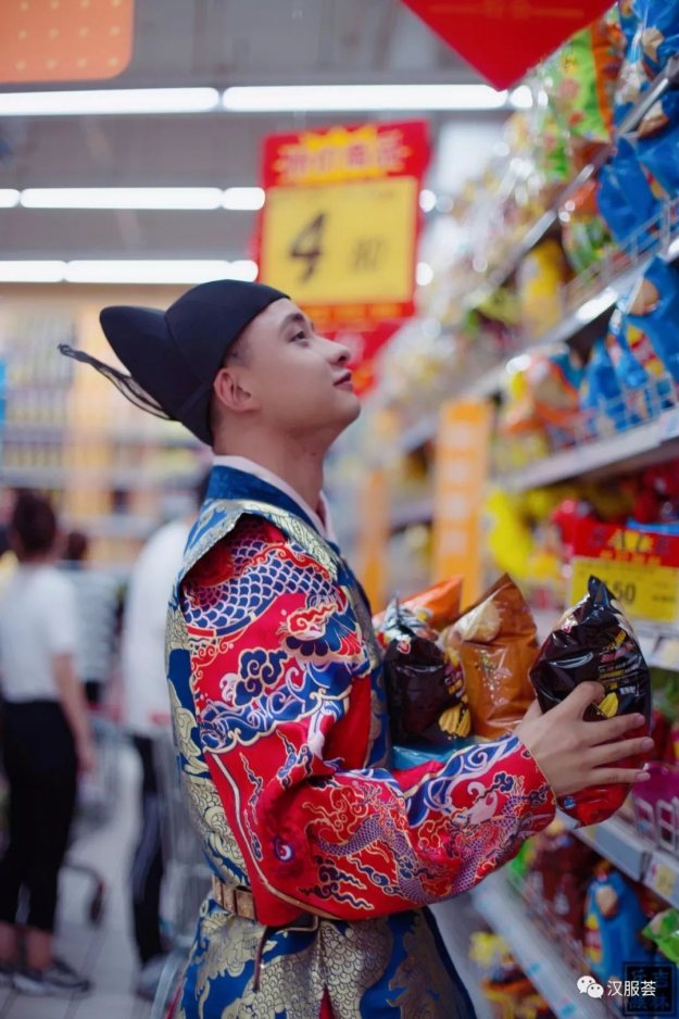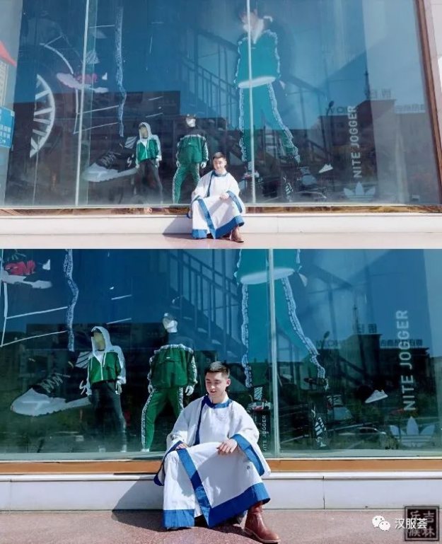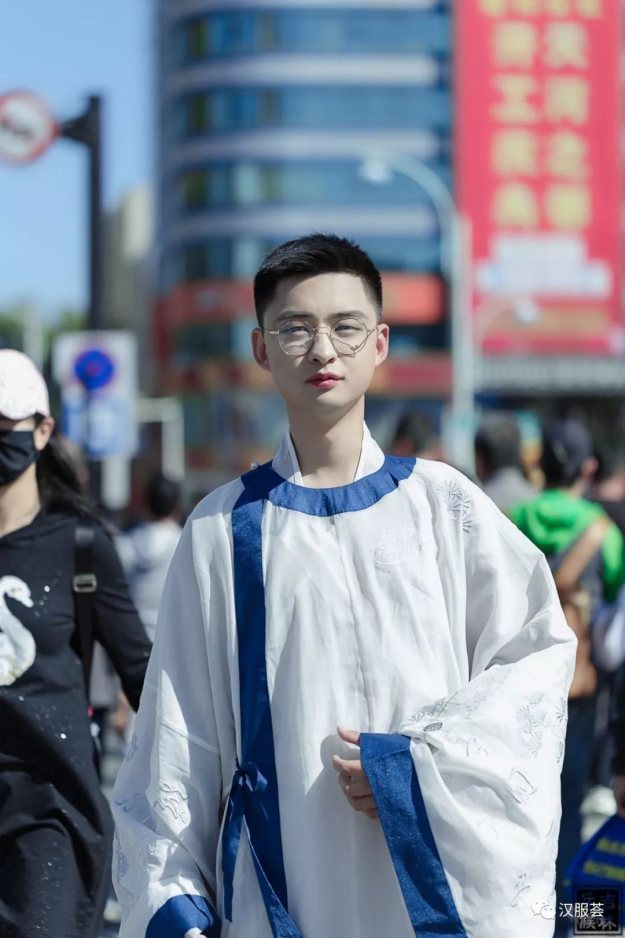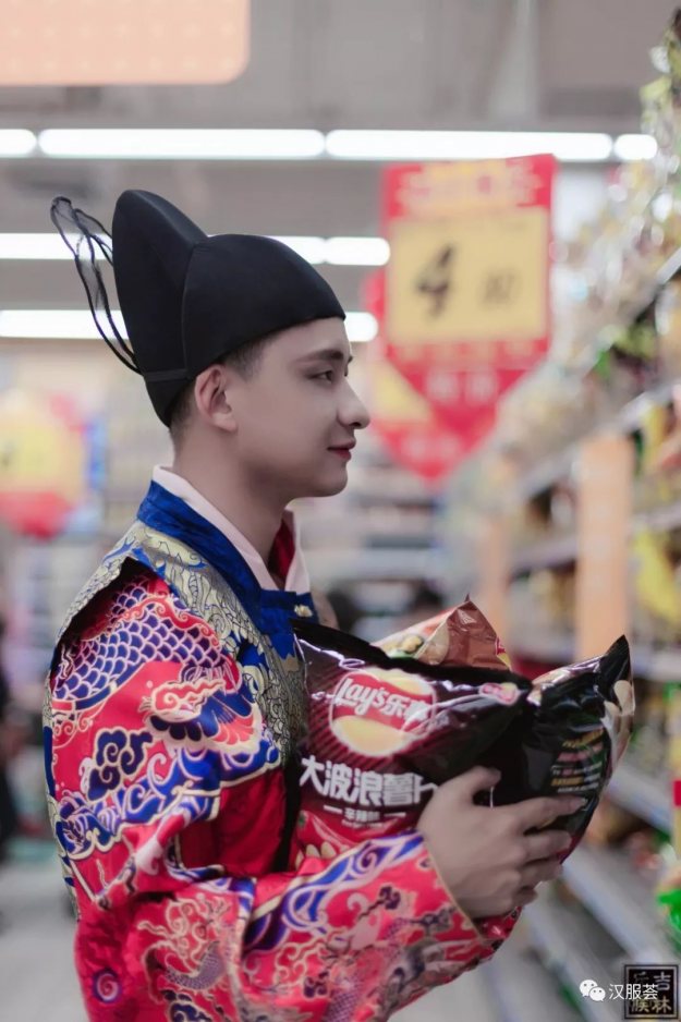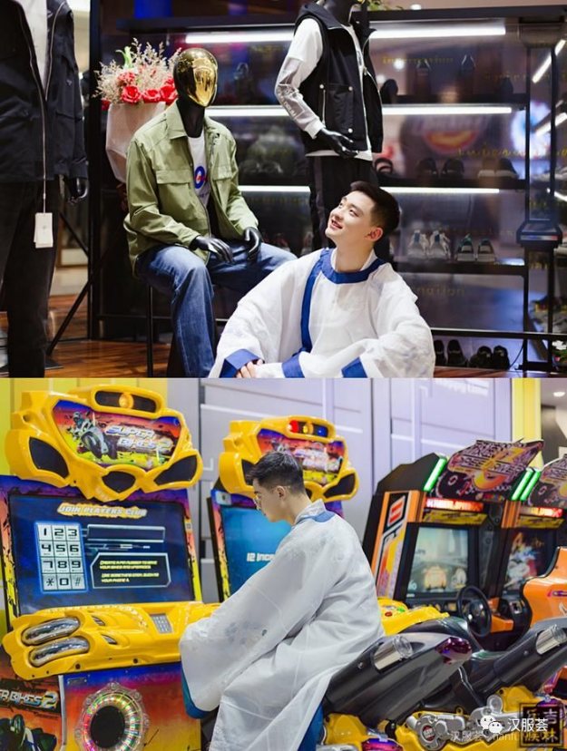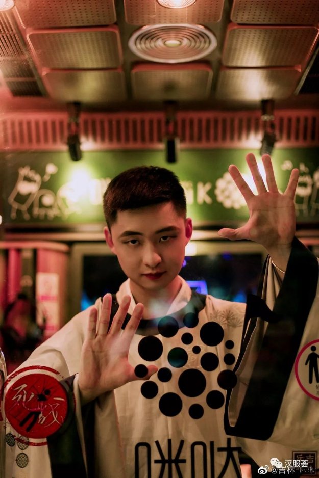 而另一方面汉服是复兴不是复古,没人规定拍汉服就一定得古刹,道观,寺庙,宫殿,古亭。没人规定拍男子汉服就得戴假发让头发变长,这样到底是在反映当下生活,还是还原古人?汉服复兴是在追寻与传承的同时让大众知道汉服是可以适应日常生活的,所以正片不是该多跟现代元素结合的嘛?那为什么不去商场,饭店,咖啡店等地方呢?男子真实长发扎起起来只要不披头散发或者戴首服就OK,短发的话直接就短发。