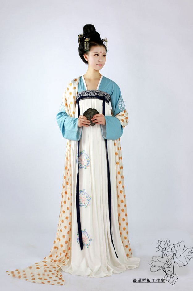 在古代,一般女子的襦裙装裙子束的都不是很高,而隋唐五代时期出现的一种裙腰束的非常高的襦裙,一些服装史上多称之为高腰襦裙。