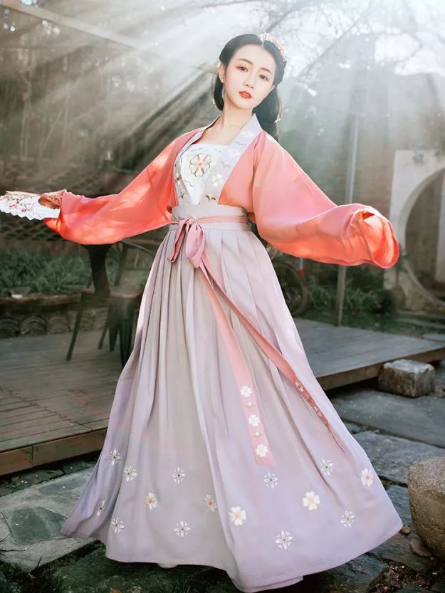 虽然很多同袍喜欢汉服都是从齐胸开始的,但是大部分身材穿齐胸都会显胖显孕。齐胸对A型身材可以说是最友好的了!齐胸可以
