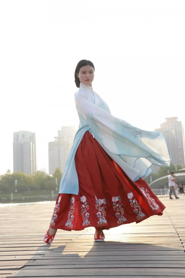 而如今,汉服的普及程度越来越高,在繁华的闹市街头,在晚风沉醉的夜晚,在风景秀丽的景区,在苍茫的敦煌戈壁之上,在圣洁纯美的雪域高原之上,人们都可以看到汉服美丽的身影。