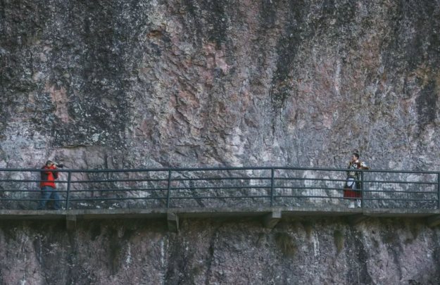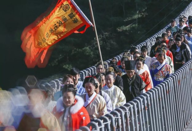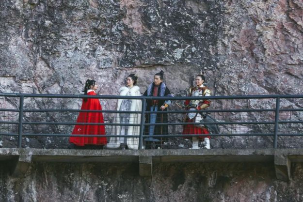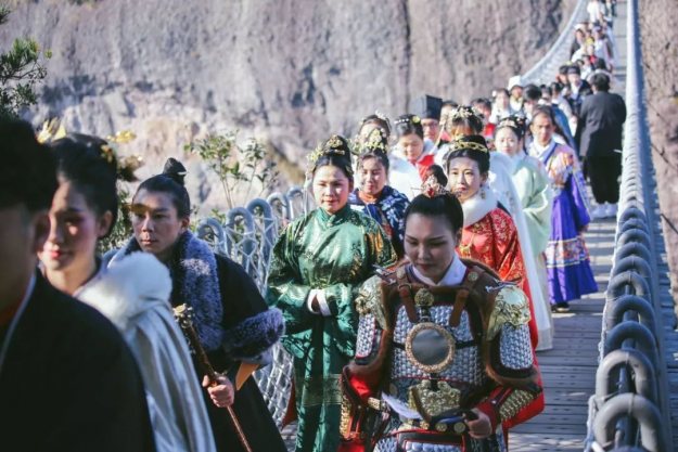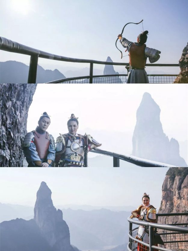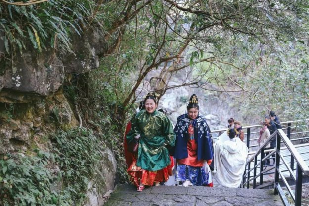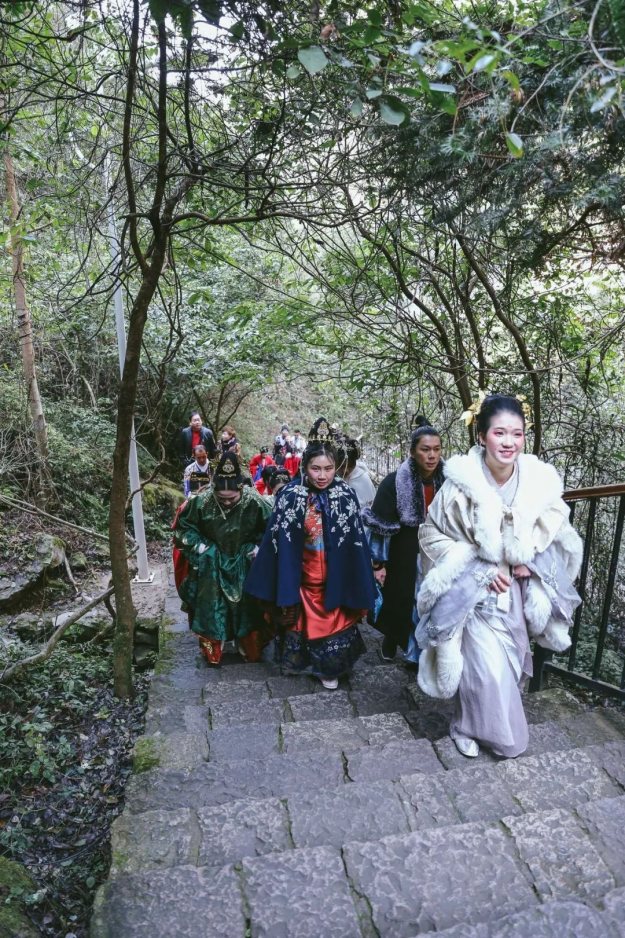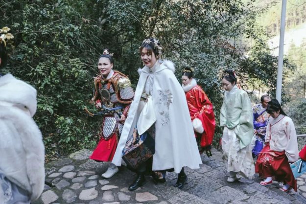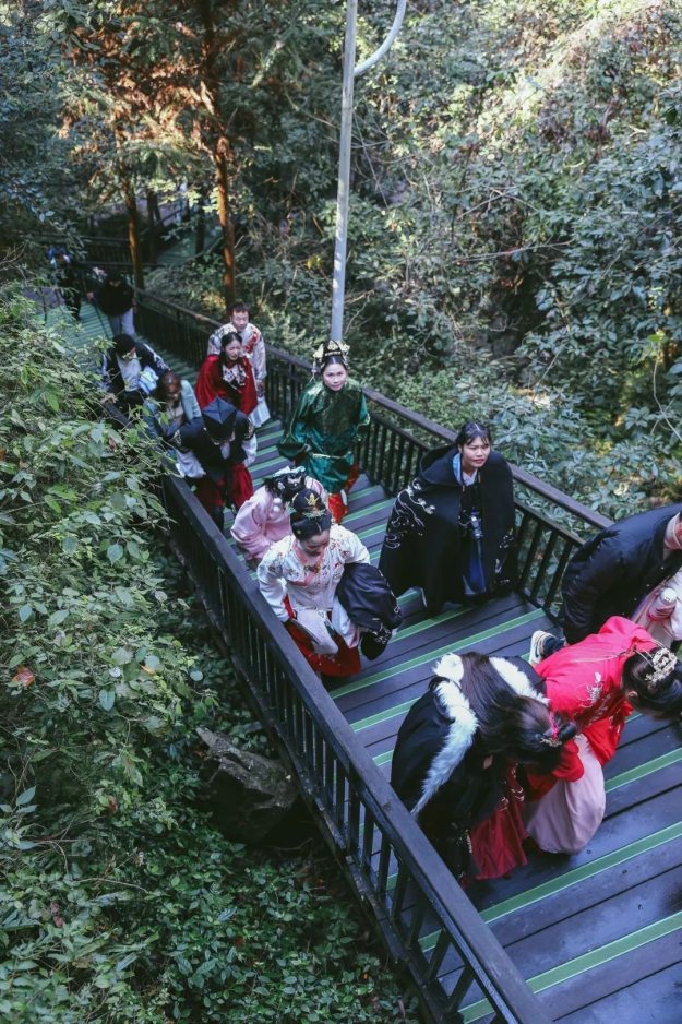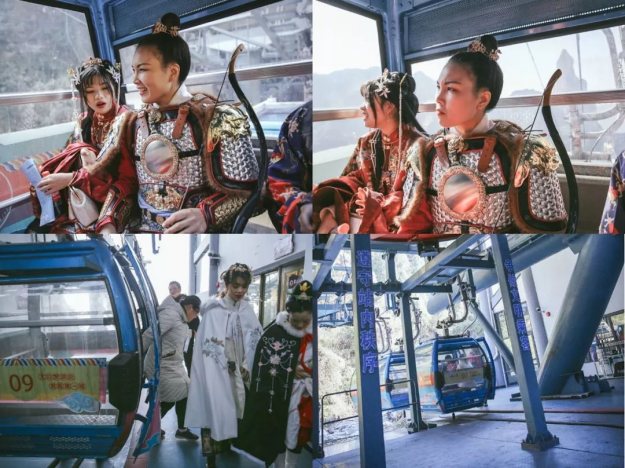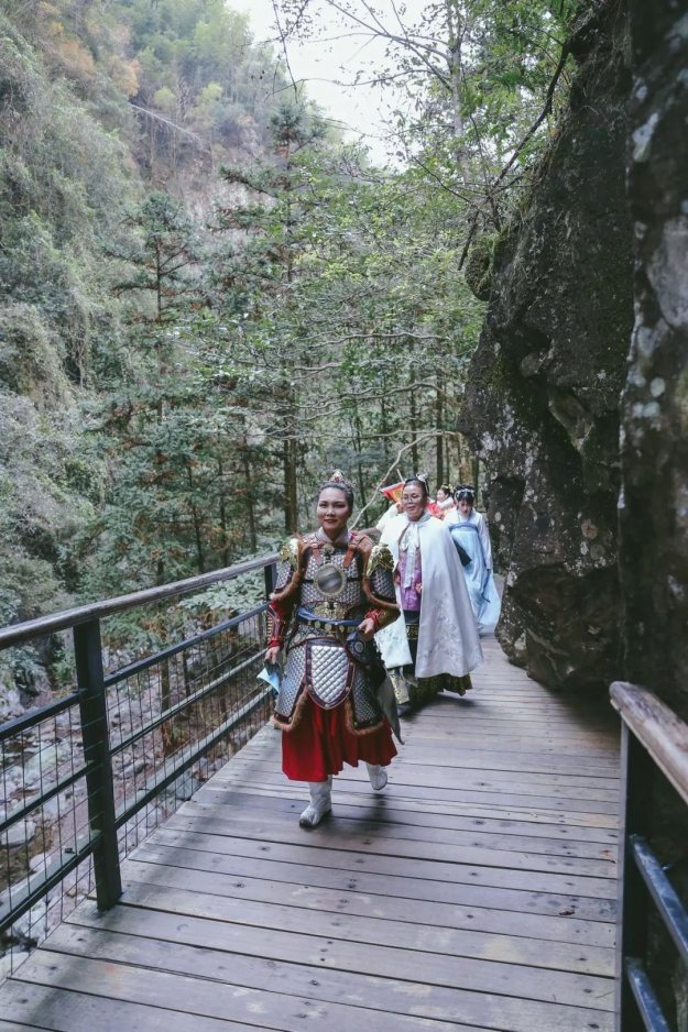 甲胄小姐姐一出场就有很多游客惊呼:花木兰来啦!汉服展示演出结束后,我们登上了李白梦游的天姥山。