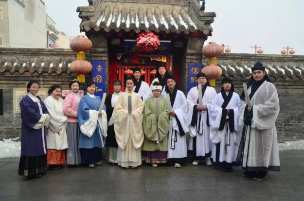 2019年12月29日上午,同袍众等齐聚沈阳中心庙祭祀,众人或深衣、或盛装,躬身毕敬,伏体毕恭,礼神明、拜先烈,进退依礼,举止维仪。