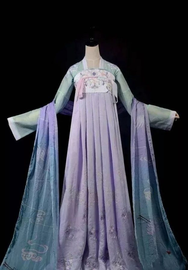其实襦裙和交窬裙最直观的区别就是外观和缝合方式,一片打褶子的是襦裙,将布料裁片再拼接的是交窬裙。襦裙一直以来都受到大众的追捧,虽然在壁画中出现过类似齐胸襦裙的服装,但由于缺少出土文物,到现在仍是存疑。(文 | 棠簇礼鱼)