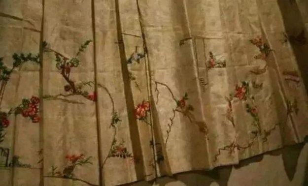 孔府旧藏的马面裙中还有一条清新淡雅、艺术价值和工艺极高的花鸟裙,裙上描绘了一幅生机盎然的花鸟图卷,有灿烂红蓼、芙蓉翠鸟、鹭鸶石竹、石榴荷花、相依鸳鸯等,刺绣精美细致,是每个大明少女的梦中情裙!