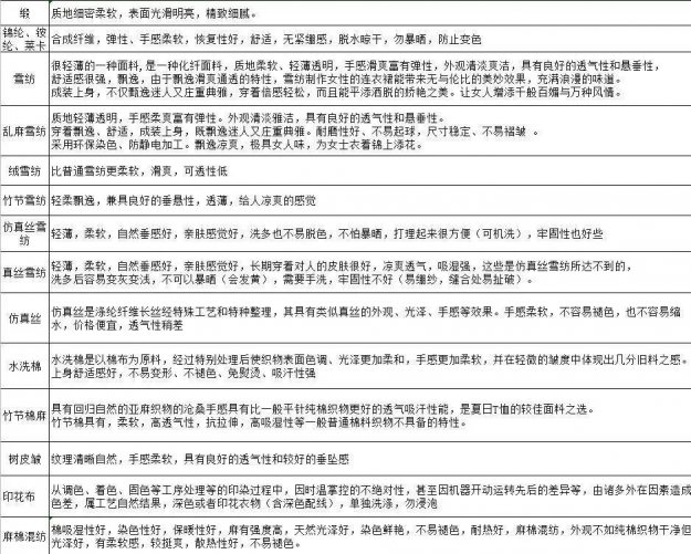 棉织物、麻纤维织物、涤纶织物、棉麻、亚麻、真丝、雪纺,都是我们比较常见的衣服面料,每个面料都有不同的特点。