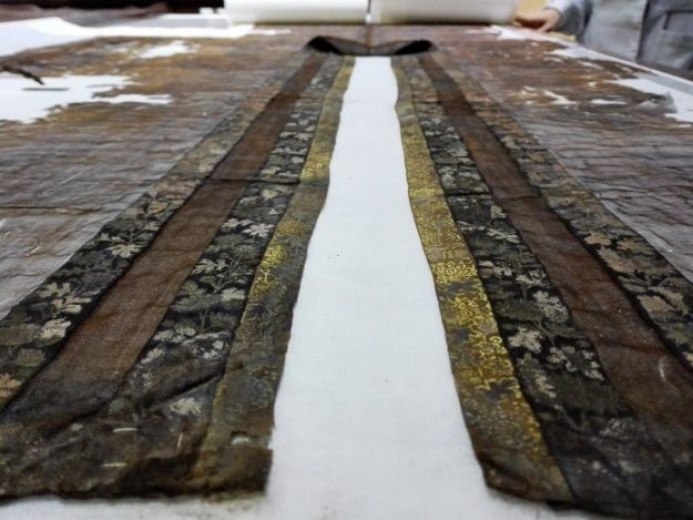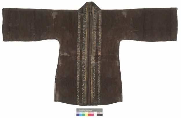 【汉服文物】南宋紫褐色罗印金彩绘花边单衣保护修复