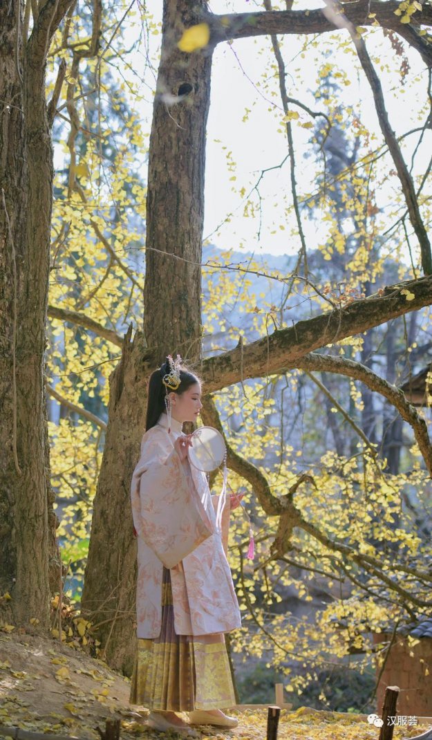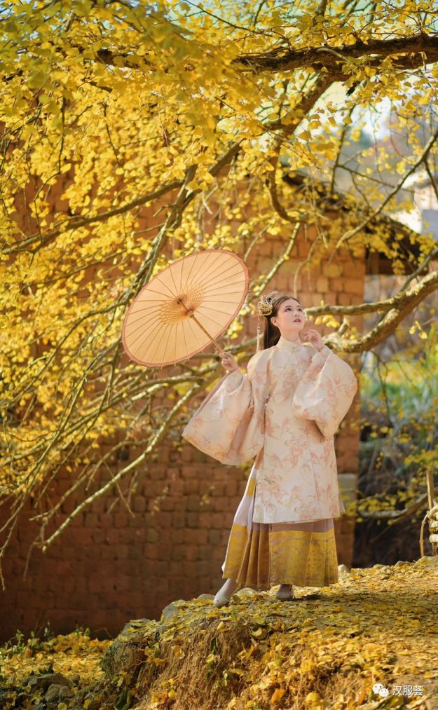 【汉服美景】银杏叶翻飞,惊艳了时光的美 雨宫千代 2020-02-21 09:29 从深圳到韶关南雄,汽车转大巴 ,来回跋涉800公里。拍摄只用了两小时。从三点到五点。入夜后的山里异常的冷,但银杏是真的很好看。出镜 | 雨宫千代地点 | 南雄坪田镇