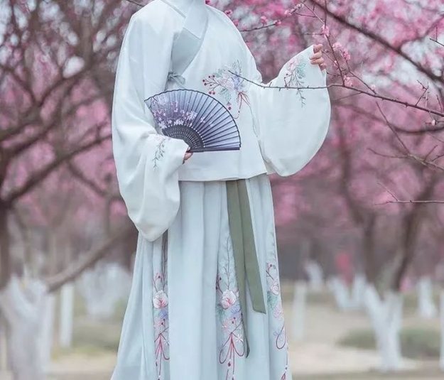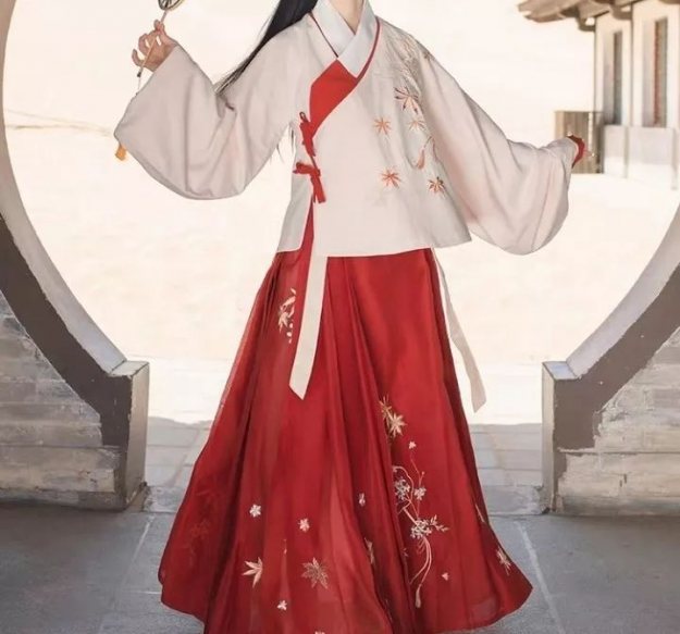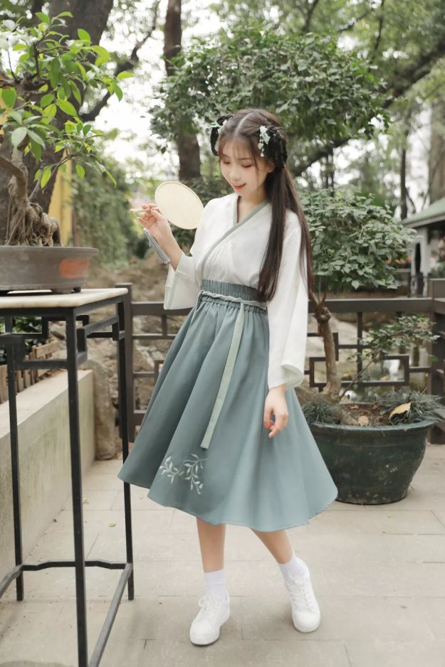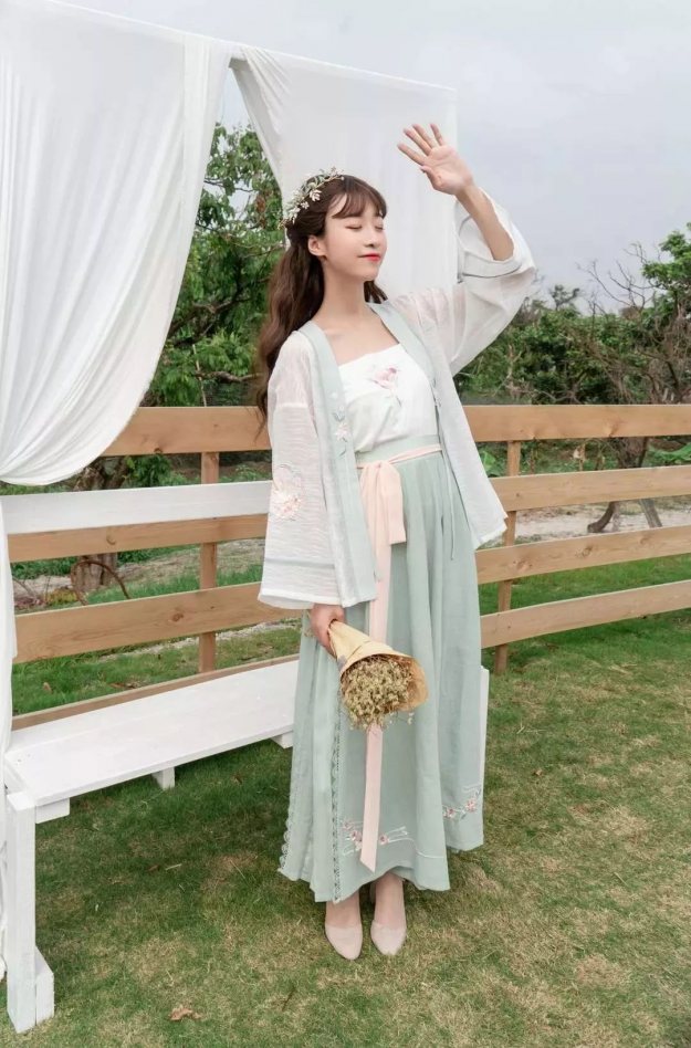 如果选择汉元素服装,可以穿能露出纤细手臂、小腿的高腰裙装;上衣则选择V领/圆领,拉长颈部线条。
