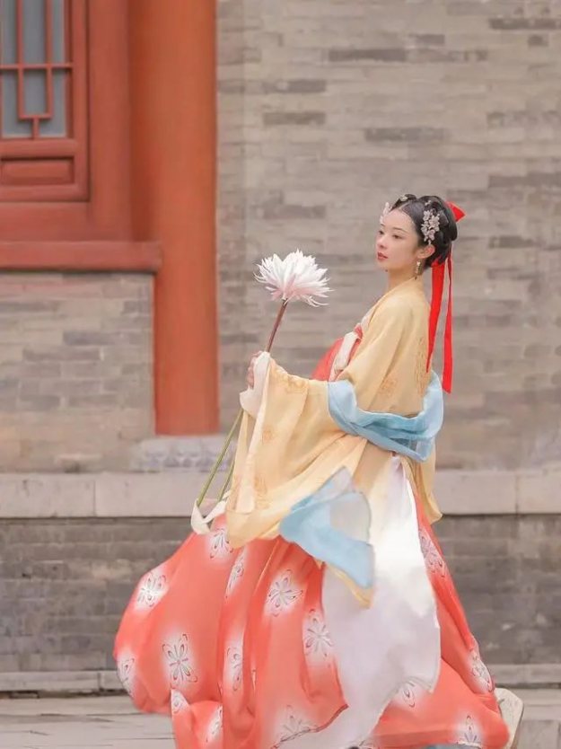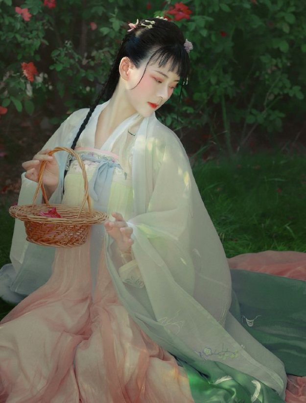 换一袭淡色系的汉服,让你在视觉上就体验一番春天的味道,此身汉服摒弃了原有的大袖衫,一袭淡蓝色的上襦搭配一条嫩黄色渐变的襦裙,用简单的颜色变换勾勒出人们对于春天的想象,点缀了人们幻古的梦境,同时又能够彰显出女子弱柳扶风的姿态,纤细的腰身搭配缓缓行走的莲步,让你体会一番盛世唐朝的景致。