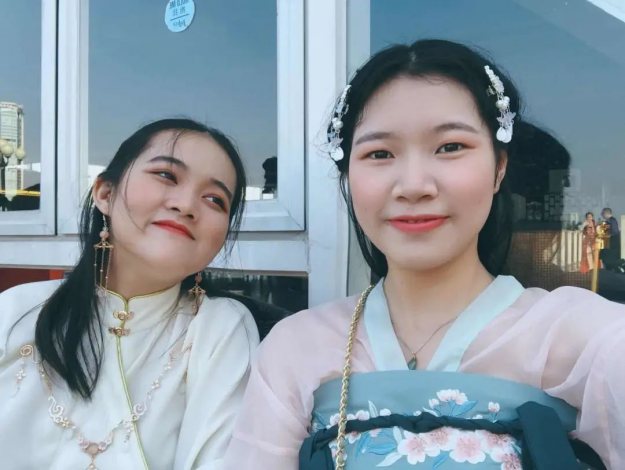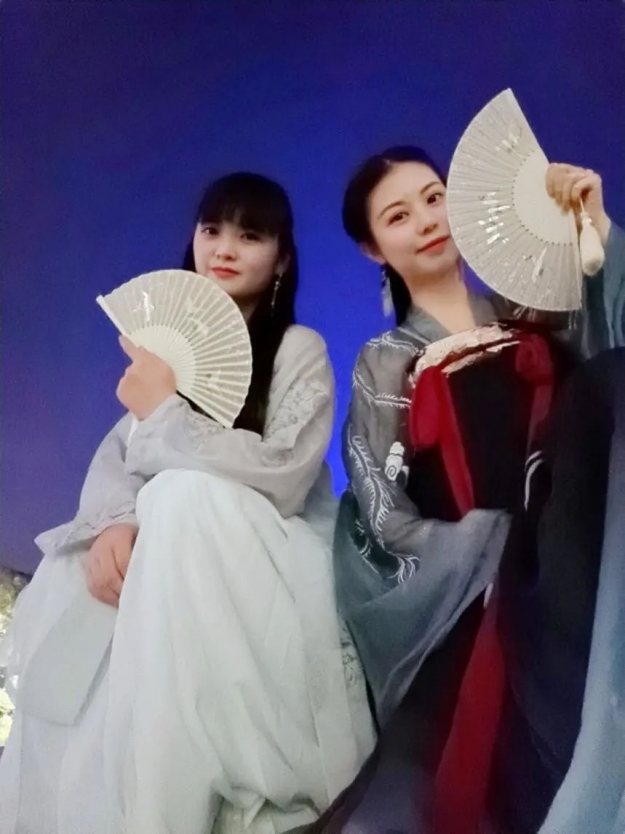 我是蔚舒,从大二(2014年)开始接触汉服,另一位是映婷,去年跟着我入了坑。我们过年期间留守在广州,坚守原本的岗位,没有到一线支援,目前只是应广东共青团号召,加入本单位的团员青年战役突击队,主要是宣传防疫知识,参与志愿活动等,主要监控、限制病人外出,检测体温比平时严格。