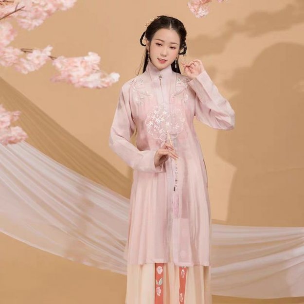 从图片中我们可以看得出来,这是一件直袖的立领衫,颜色是非常浅非常温柔的粉色,穿在身上也会将人衬托得更加温柔。因为这件长衫布料垂感比较好,再加上衣服长度比较长,所以穿在身上也就显得格外苗条纤细了一些。