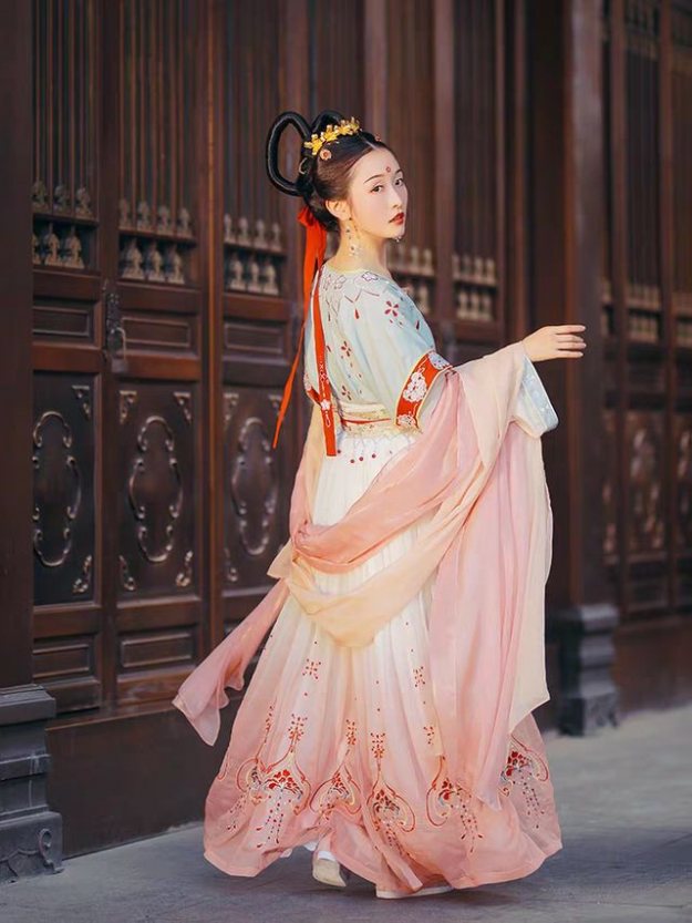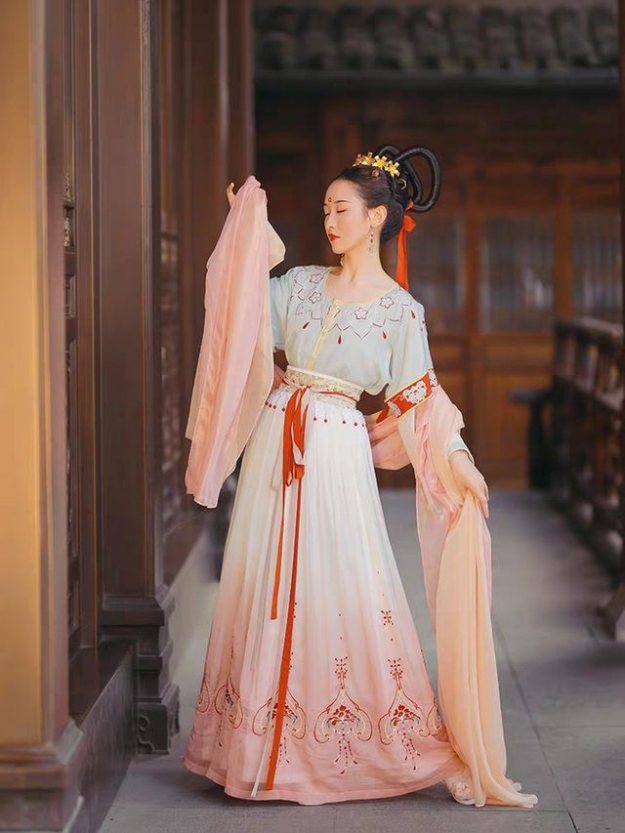 如果说在所有形制的汉服里面最显瘦的是什么形制的话,我可能第一个想到的就是坦领。这是唐朝的一种形制,现在很多店家也都做了复原款的坦领,这些复原款的唐制汉服穿在身上真的就像是把整个大唐的盛世之气披在了身上一下,显得十分华贵大气。