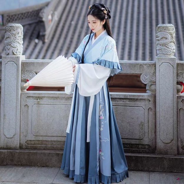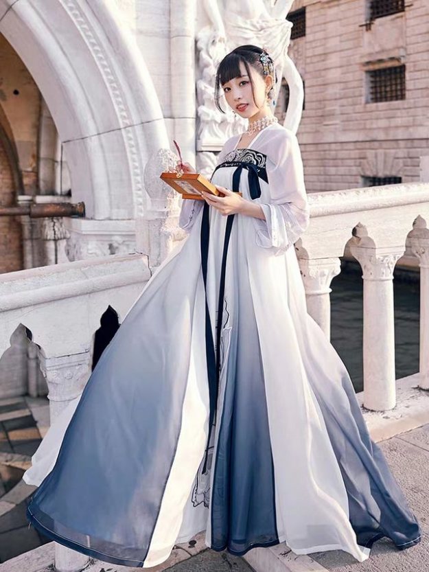 坦领汉服的上半身是由两件领口开得比较大的上衣组成的,一件半臂一件长袖,这样搭配起来会更加与层次感。对于一些有锁骨的女生来栓,坦领真的非常友好,可以让人看起来十分性感。当然了,没有锁骨也没有关系,反正坦领汉服穿在身上本身就是十分显瘦的。