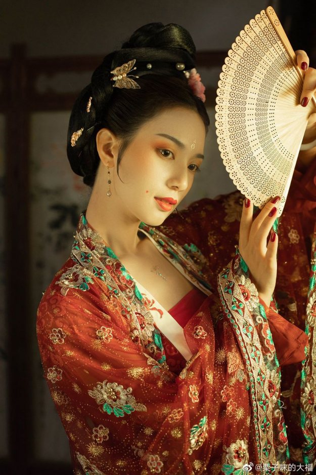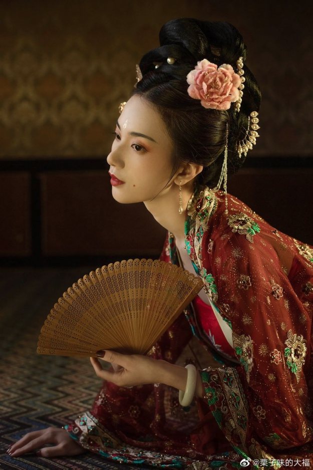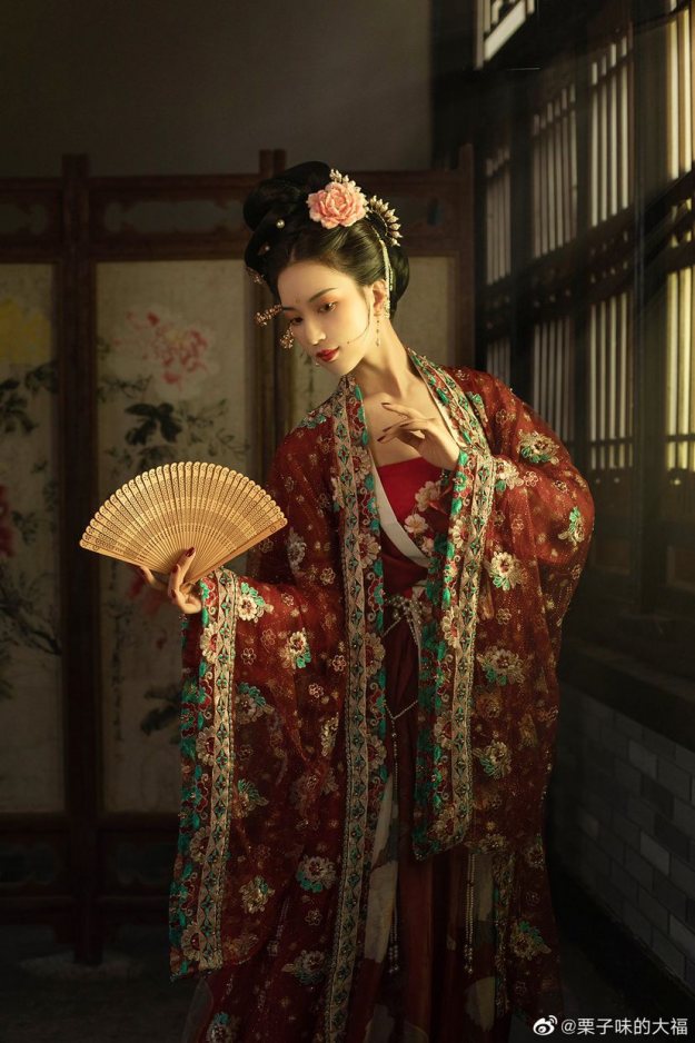 【汉服仕女】云想衣裳花想容, 春风拂槛露华浓 栗子味的大福 2020-03-23 03:43 云想衣裳花想容, 春风拂槛露华浓。若非群玉山头见, 会向瑶台月下逢。第一次尝试了闪光灯加色片,不得不说真香,整个色调灵感来源于妖猫传,希望2020年有更多的尝试与突破,也感谢一直以来陪伴我的麻豆跟化妆造型师。摄影 | 栗子味的大福出镜 | 倾眸妆面 | 七了个大爷发型 | 嘿那个谁——夙夕服装 | 抚绸衣庄