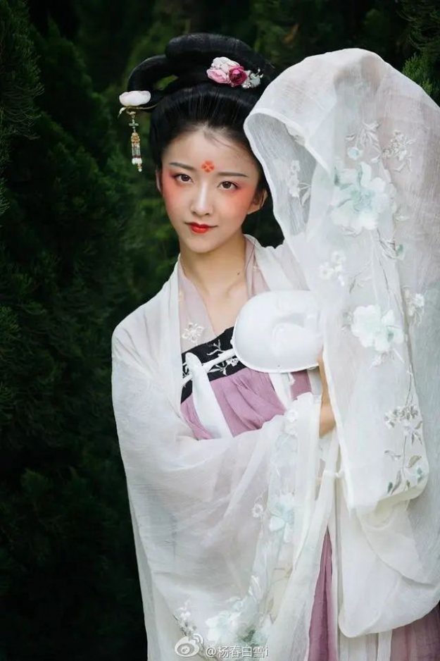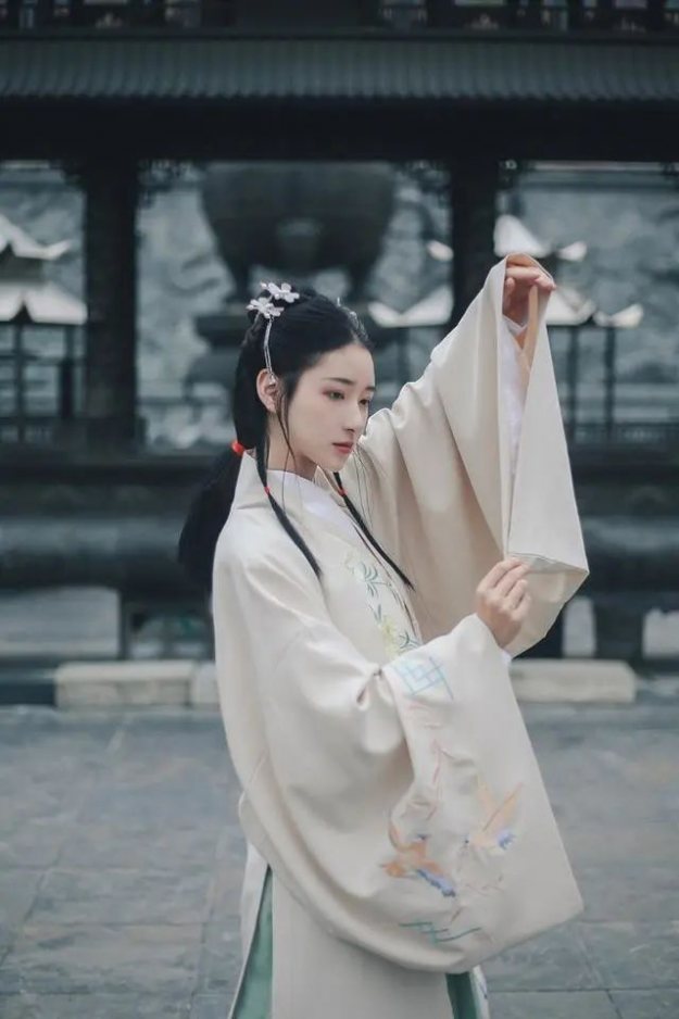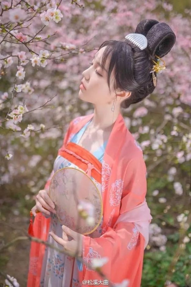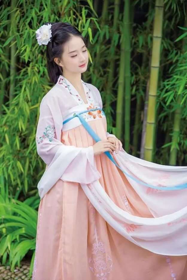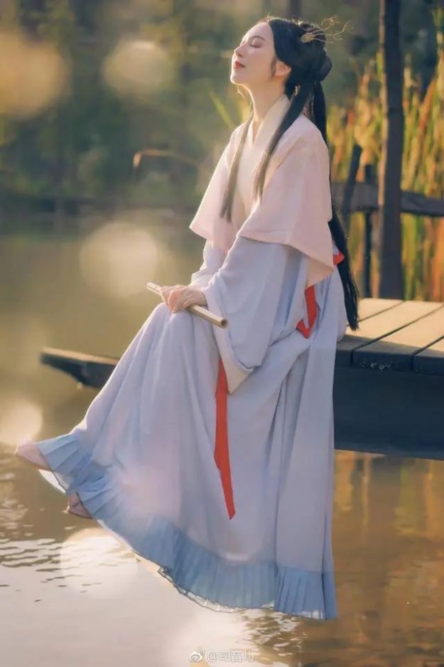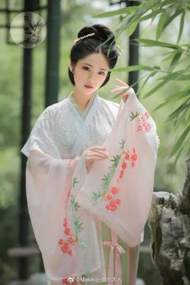 不同于西方服装的立体贴身,汉服习惯将身材隐于宽袍大袖之中,坐时衣带萦纤草,行即裙裾扫落梅。