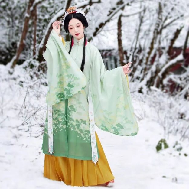 这样的身材穿明制长衫/袄+马面裙,能尽显端庄雍容气质,将缺点变成优点。不仅如此,明制的大放量也比较藏肉,穿起来也很大气。