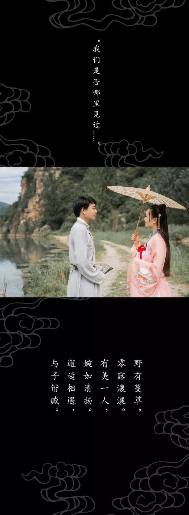 【汉服摄影】诗经·国风·郑风·野有蔓草 @忆娉伊笑、紫芝眉宇 2020-04-07 07:35 诗三百,一言以蔽之,曰思无邪。《野有蔓草》讲的是一对青年男女于小路相遇,一见钟情的故事。不过⋯⋯世间哪有什么一见钟情,或许是曾经有过一段缘分在吧。出镜:@忆娉伊笑、紫芝眉宇摄影师:@Weelso-薇笑