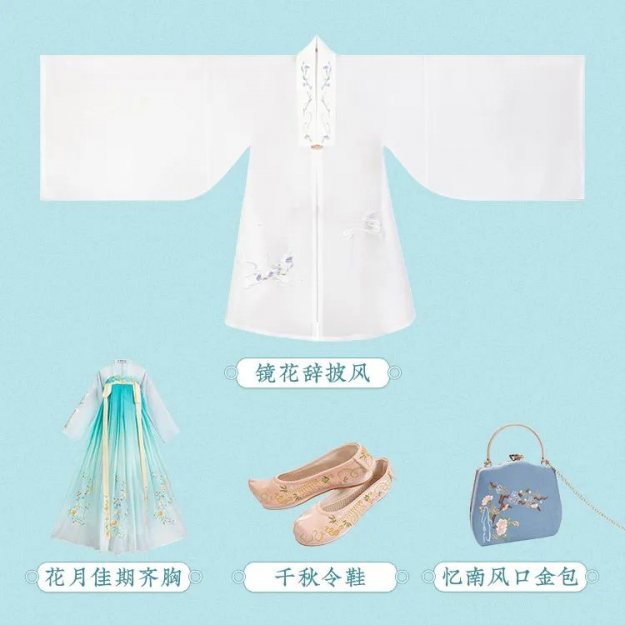 02、镜花辞披风+花月佳期齐胸+千秋令鞋+忆南风口金包