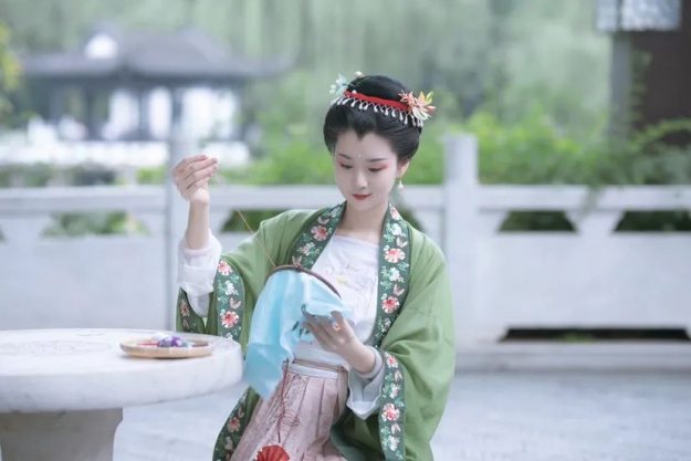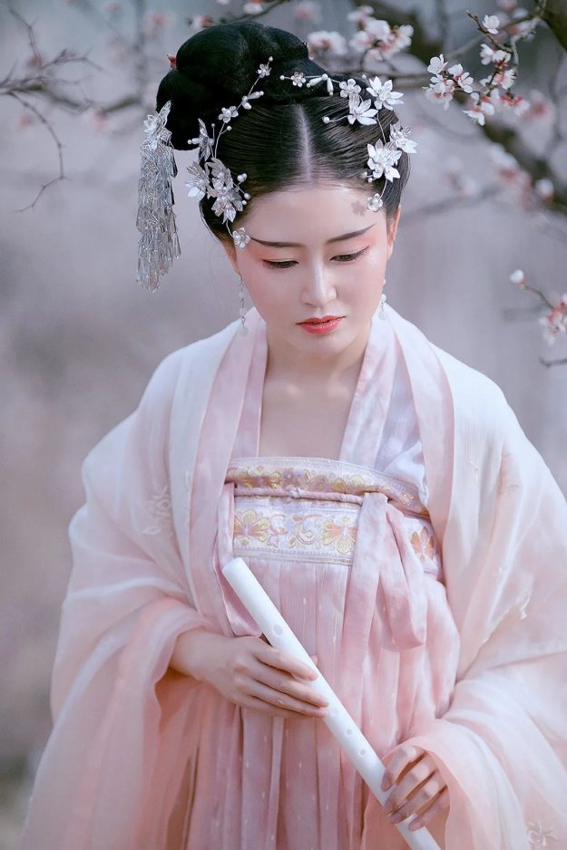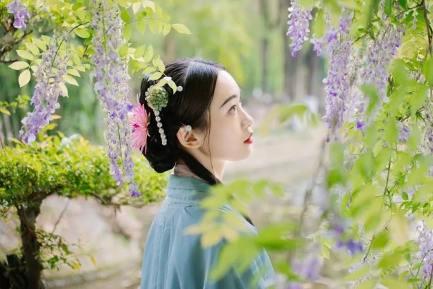 如果条件允许,可以自由地带一些适合的古风假花。比如与自己汉服颜色相近或者配色和谐的花朵。