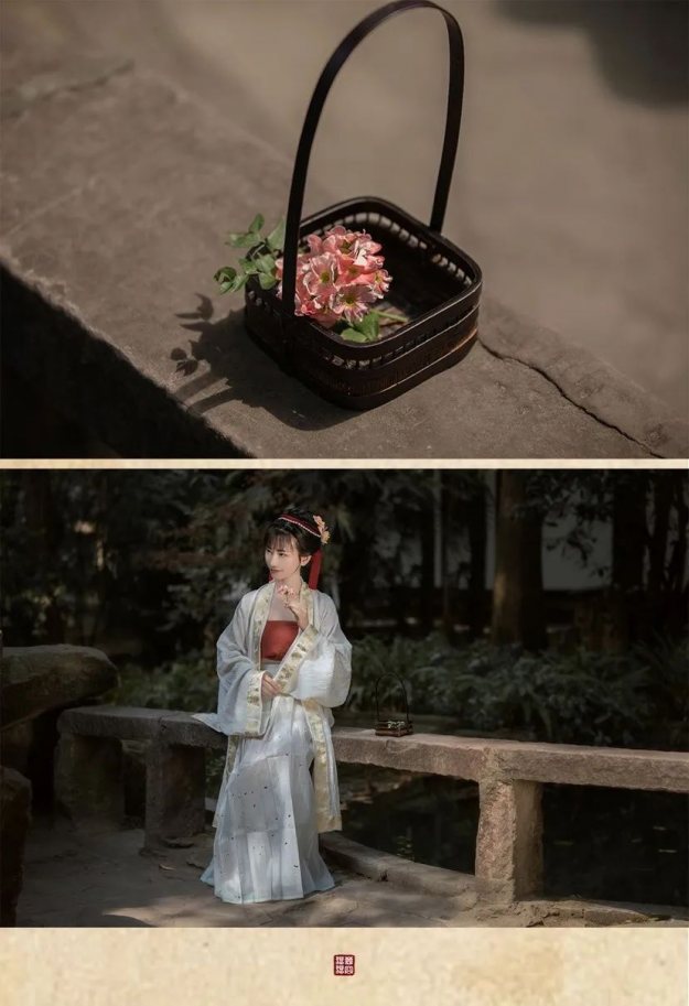 有条件的也可戴上小花篮,不管是放什么东西都会很有古风感觉。如果觉得花篮有提手不好收纳,也可以考虑下面这种藤编的小托盘,拿着比较轻便而且耐压。