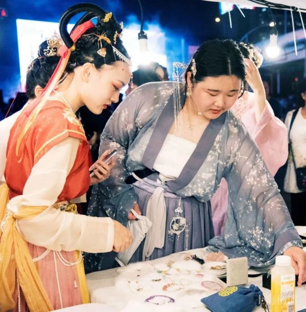 会场同样也有不少汉服商家入驻,为粉丝们带来各类精美的汉风饰品、各类原创汉服、绣花工艺品等等。在看展的同时,也能买到自己心仪的礼物,这让不少汉服爱好者大呼过瘾。