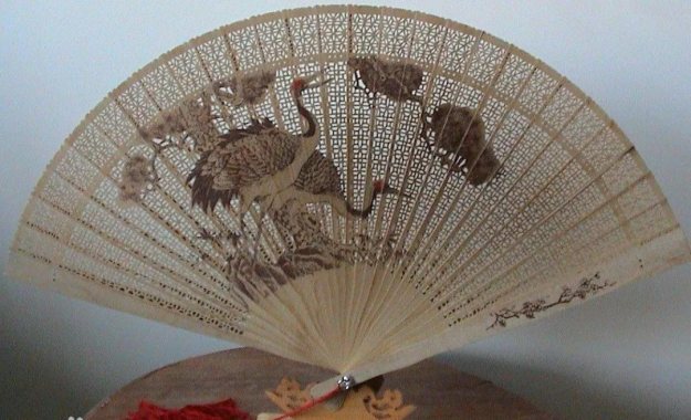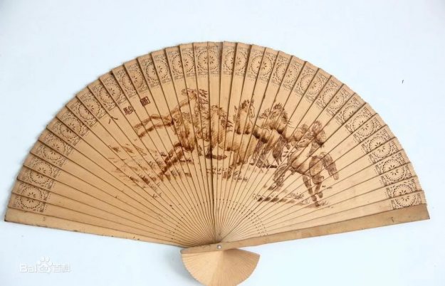 明清是折扇发展鼎盛期。用料贵重,将名胜牙、玳瑁、鸡翅木制成扇骨,制作精湛,在象牙骨大边上镂雕、细刻、红木、鸟木骨大边,扇骨有“如意头"、"琴式"、"螳螂腿"、"水浪式"等,扇头有"瓶式"、"荸荠头"、"橄榄头"、"玉兰头"、"方头"、"圆头"、"金鱼头"等,扇骨上采用了各种艺术的表现手法博得人们所爱。