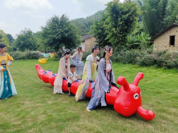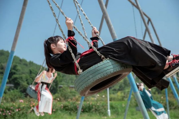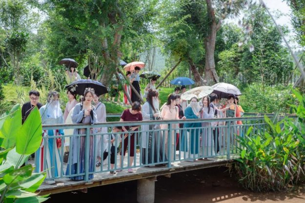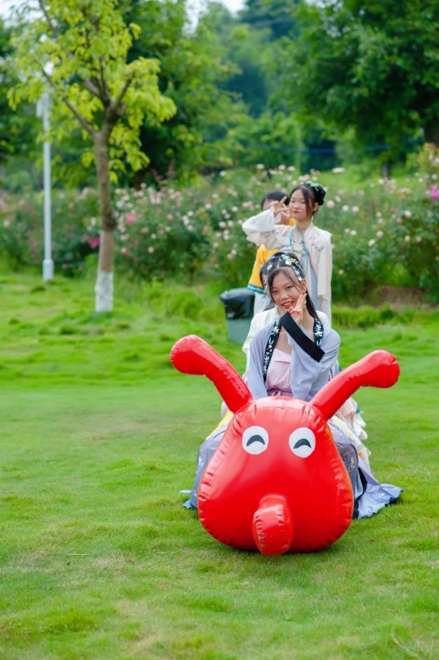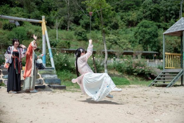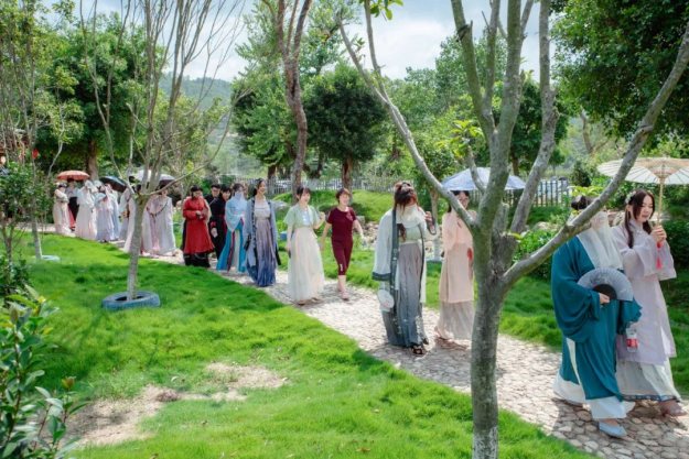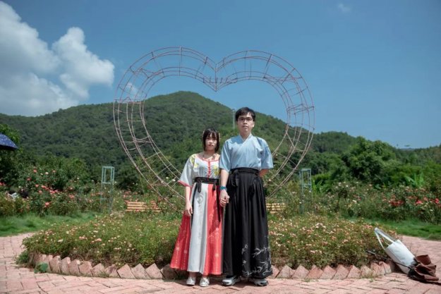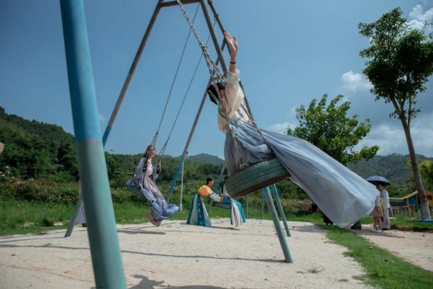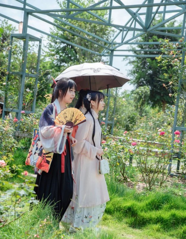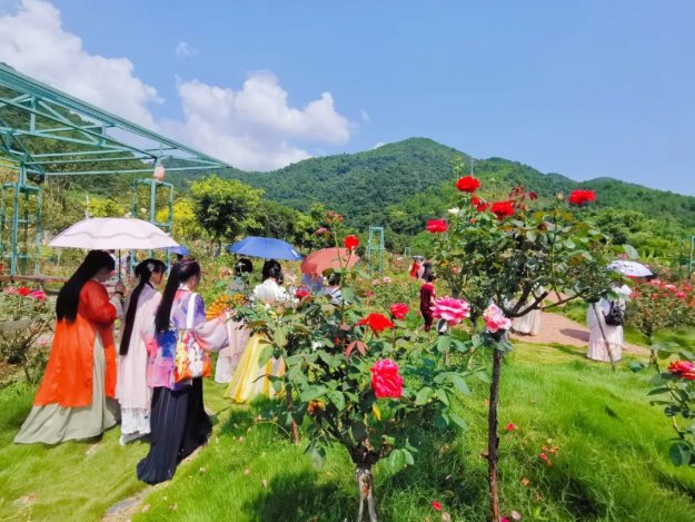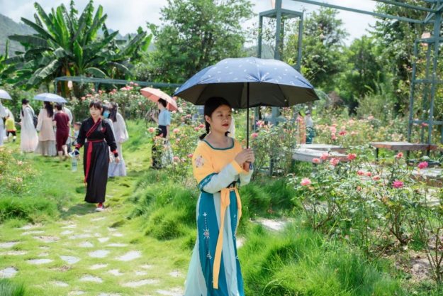 七夕的浪漫少不了玫瑰花的点缀,小仙女们穿着漂亮的汉服,入园了,共赏泉水谷玫瑰园里面漂亮的玫瑰花,仙女们也吸引了众多游客的驻足观看。