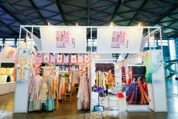 走秀之外,多家汉服品牌在N5馆展示贩售的汉服更是自成一道靓丽的风景线。随着中国传统文化的复苏以及与世界文化的融合的趋势,ChinaJoy首次吸纳汉服元素,作为展示平台为现场观众提供了解与近距离接触多元服饰文化的契机。值得一提的是,中华老字号恒源祥首次参展,把中式高定的“海派华服”带到了现场,混搭“传统文化个性”和“年轻时尚潮流”,形成国潮新风尚。