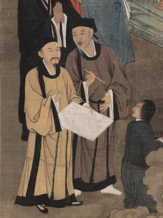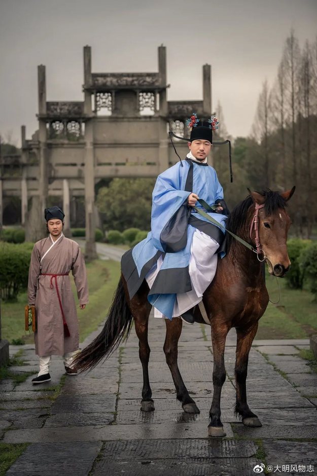 明代时儒巾、襕衫成为生员的主要服饰搭配。《明史》记载:“帝以学校为国储材,而士子巾服无异胥吏,宜更易之……赐监生蓝衫、绦各一,以为天下先。”