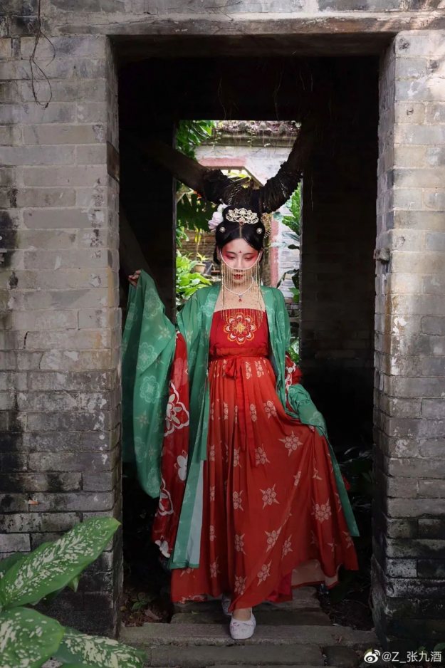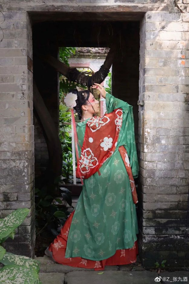 原创日常汉服女装印花对襟长褙子套装抹胸民族风女装非古装惊梦