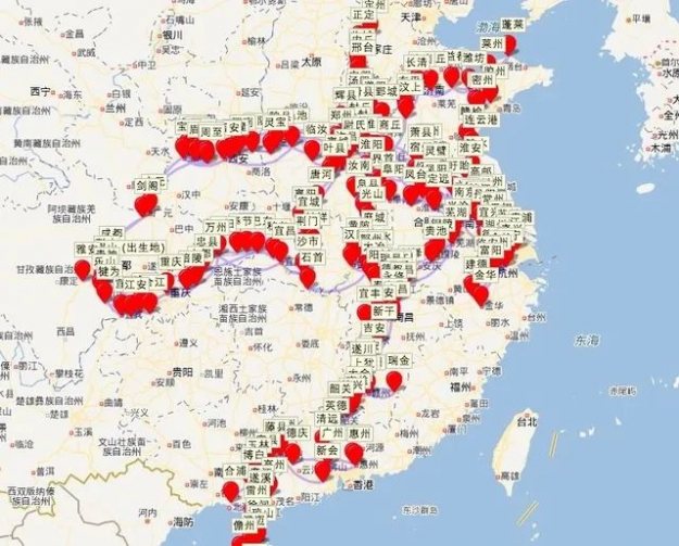 有人将苏轼的一生活动足迹做成了地图,竟然走出了一个“中”字。换成城市分布图,可以看出苏轼一生去过大概90座城市,可以说一生都在路上。