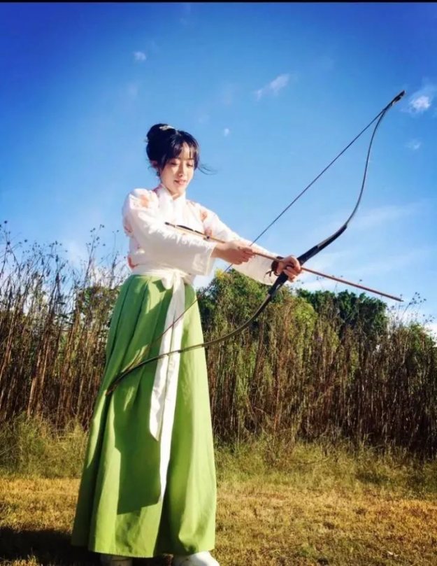 她平日里会穿着汉服射箭,弹古筝,练书法,