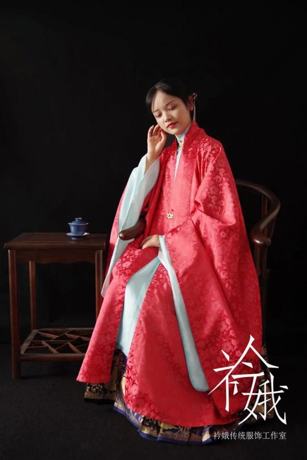 这两款披风到了清代仍旧被汉族女子沿用, 衣服的衣身、衣袖长短变化以及细节装饰随着时间和流行趋势的变化而变化。