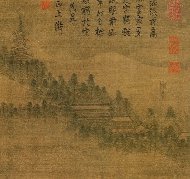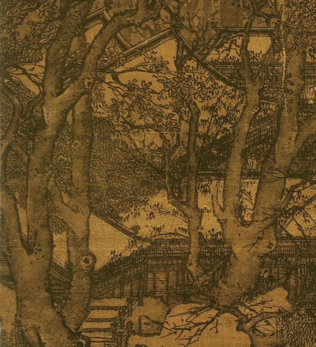 马远凝神落笔,将宁宗摇身一变,变成倚杖独立的文士;陈与义的无住庵则被他搬到了凤凰山上,真正成了“高处不胜寒”的玉宇琼楼。