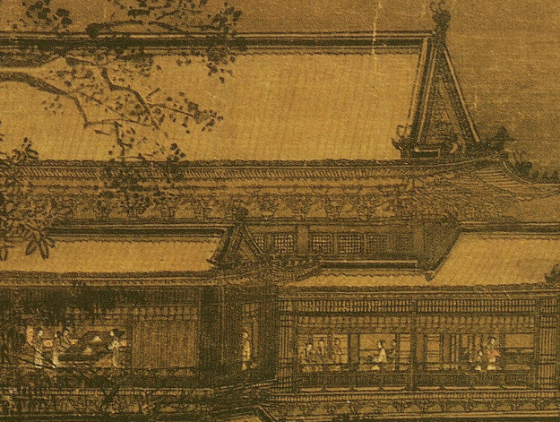 建筑的主殿为重檐歇山顶,垂脊柱饰有仙人、鸟兽,气派非常,显然是豪门贵戚的私人会所。极有可能是临安城北的群仙绘福楼。