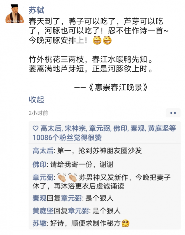 苏轼在诗词文书法等方面上的成就均臻于一流,可谓全能型选手。同时,他为官造福百姓,为人旷达乐观,对美食制作还颇有心得,因此,他一直是人们争相崇拜和喜爱的对象,上至皇帝太后,下到平民百姓,坐拥粉丝无数。其中,最“出格”的粉丝莫过于为了诵读偶像苏轼的诗歌,狠心将美貌妻子休掉的章元弼;地位最高的粉丝则是宋代的皇帝和太后,高太后就非常欣赏苏轼的才华,她在位期间,苏轼连连升官,得到重用;而在女性粉丝中,最幸福的当属王朝云,直接将偶像追到手,可谓“追星”典范。从粉丝的分布情况来看,苏轼真真是男女通吃,老少皆宜。