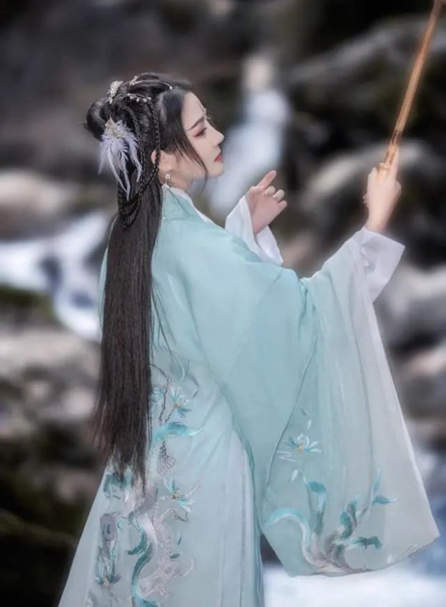 很多女孩子小时候都有披着床单扮仙女的举动,她也不例外,在汉服这里,对仙女的幻想、古诗词的韵味和传统文化融合起来,达到了一个近乎完美的呈现。