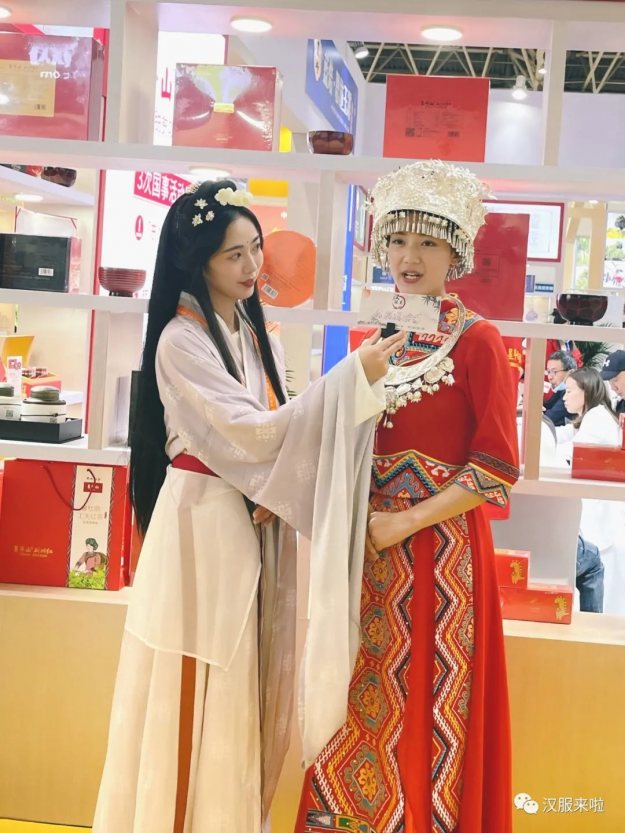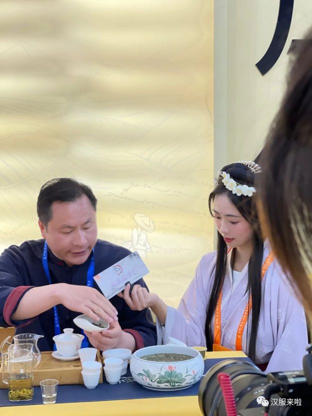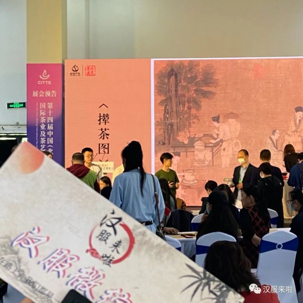 茶博会现场来客汇聚,寻茶,问茶,品茶,淘物者皆有之,来自天南海北的茶商们耐心解答,忙的不亦乐乎。在3号场馆还开设了汉服体验店,来客们换上绝美汉服,赏茶淘物想必更加有滋有味。