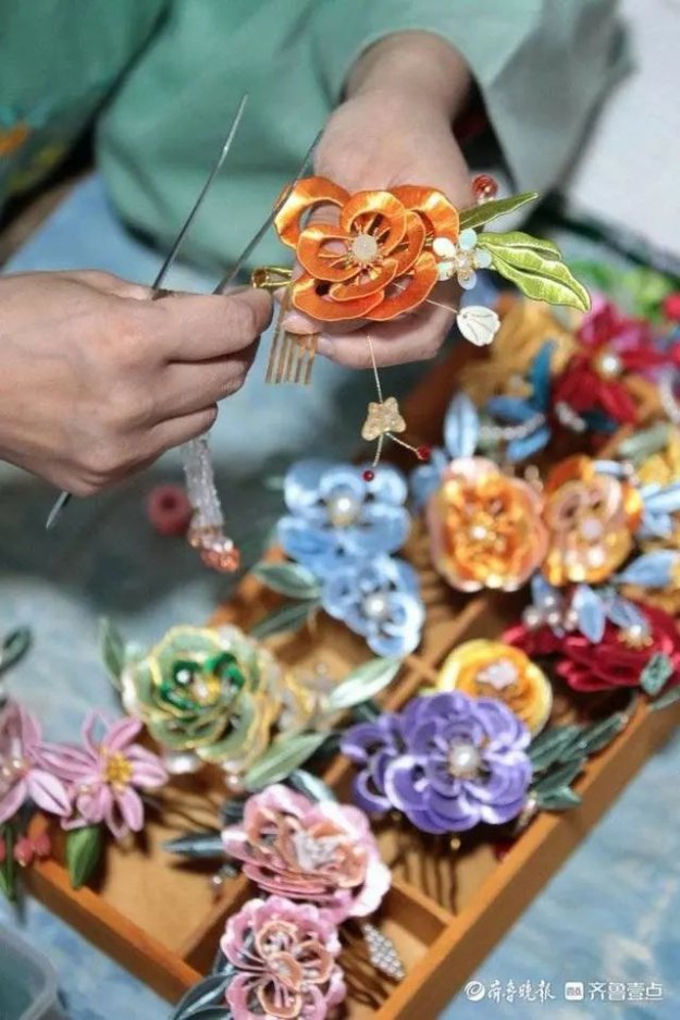 舒秋红制作的缠花发饰精致美观,深受同袍们的喜爱。