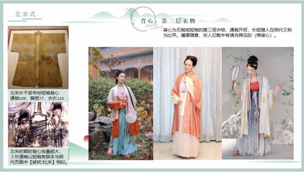 宋制汉服也就是宋朝的服饰,宋代女性上衣一般穿着宋抹,袄,襦,衫,褙子,半臂:下裳一般为裙子和宋裤。没有比宋制褙子更能代表宋朝的服饰特征,因为这是新创的,就像明朝的袄裙,马面裙一样。