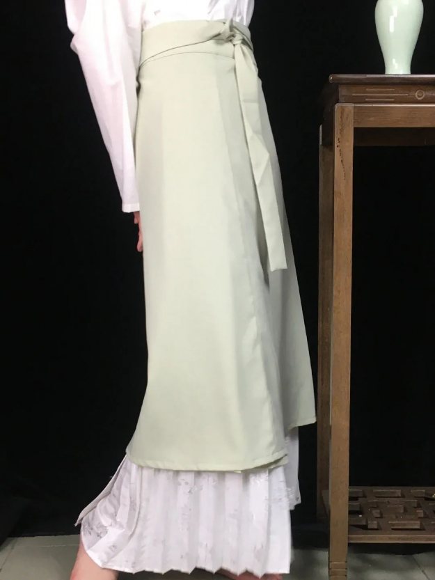 因为汉服不只是长裙,还有中长款及膝的两片裙(旋裙),也有短衬裙。