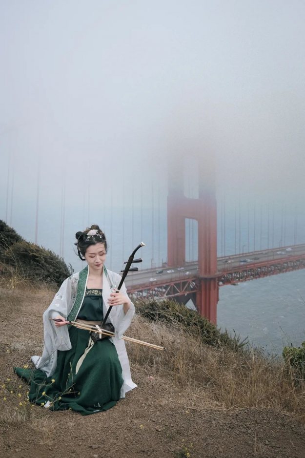马克吐温曾说过:“世界上最冷的冬天是旧金山的夏天”。冒着金门大桥夏天的十级北极风暴,我们选择在这里汉服快闪,不仅仅因为这里是代表旧金山湾区乃至北加州的地标性建筑和城市天际线,还有就是这是我们目前所能到达的离家最近的地方,太平洋对岸就是中国,大洋彼岸是吾乡。
