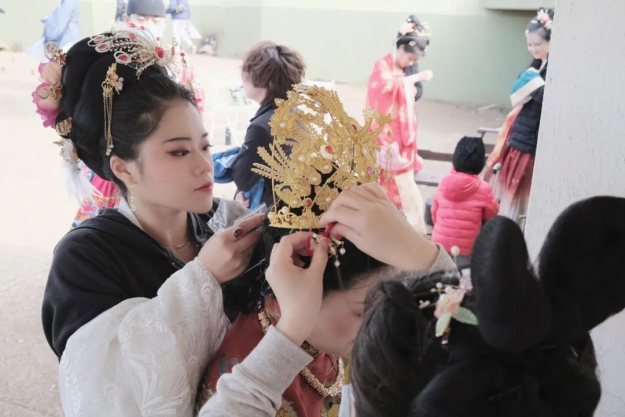 家住旧金山的Dana向笔者介绍说:“我参加的是舞蹈部分的演出,提前一个月就开始排练,并且专门从中国订制空运过来统一的唐代汉服——坦领、破裙、璎珞,大家一开始还担心住在湾区各地缺乏集体排练会动作不协调,所以每周在ZOOM上在线集训,但到了现场效果出乎意料的好,很多美国人找我们合影,感觉大家的辛苦没有白费。”