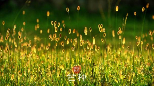 芒种为五月节。这个芒是指稻麦,麦子到此时始熟,田野里开始弥漫新麦的清香。水稻过此时则不可种,稻田里也已一片怡人的新绿。芒种一词,最早出《周礼》的“泽草所生,种之芒种。”东汉郑玄的解释是,“泽草之所生,其地可种芒种,芒种,稻麦也”。