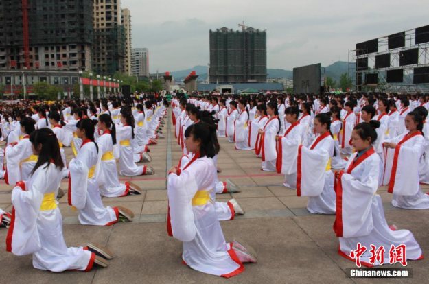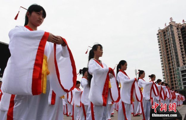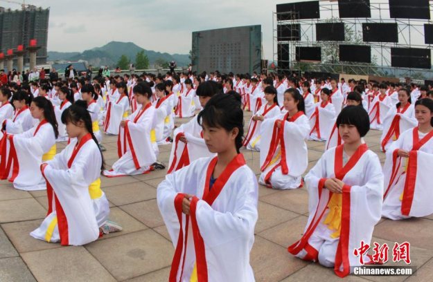 湖南洪江:"上巳节"千名少女穿汉服参加成人礼