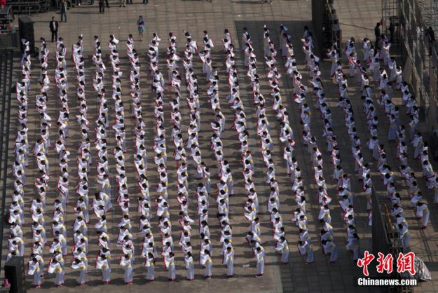 4月21日,湖南省洪江市举办“三月三”女儿节活动,千名14-24周岁的年轻女子,身穿传统服装,队列整齐,依照古时习俗庄严宣誓,体验成人大典。